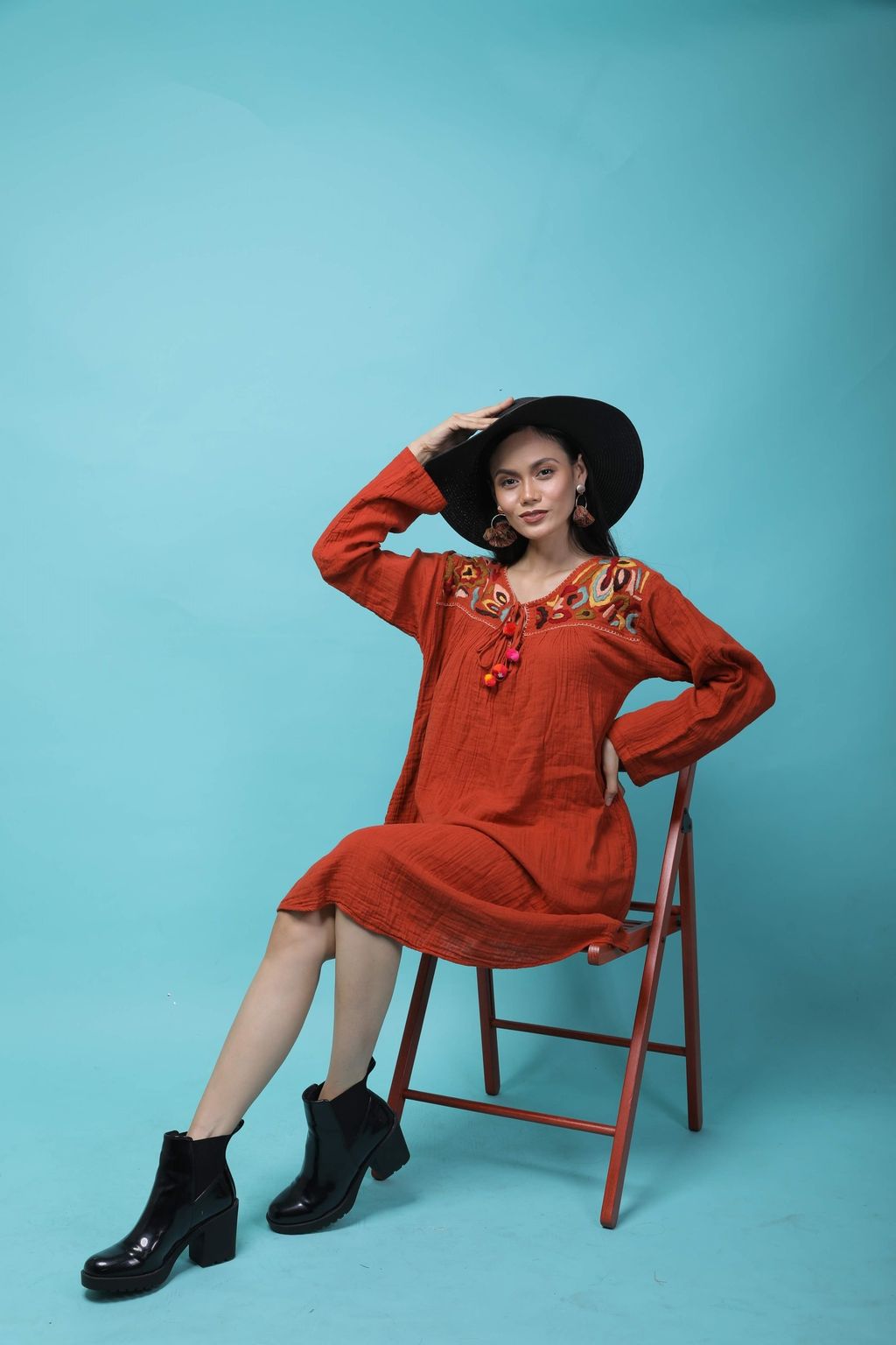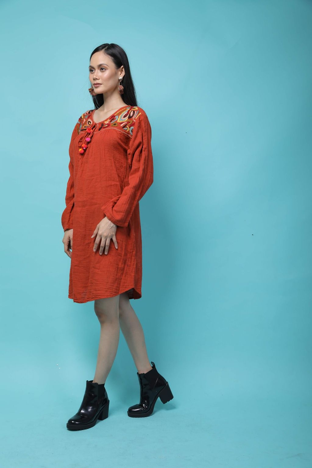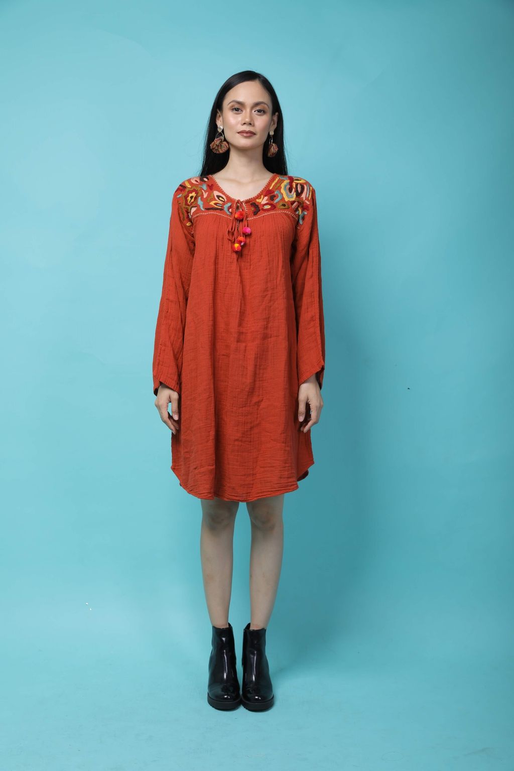 This long sleeves boho knee length dress is so chic. Wear it on it's own or pair it with jeggings or leggings.