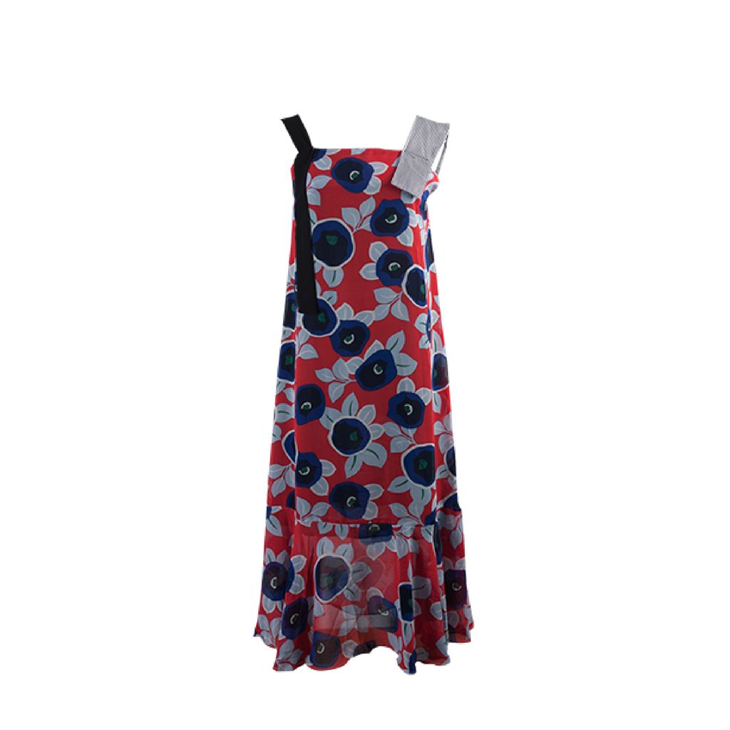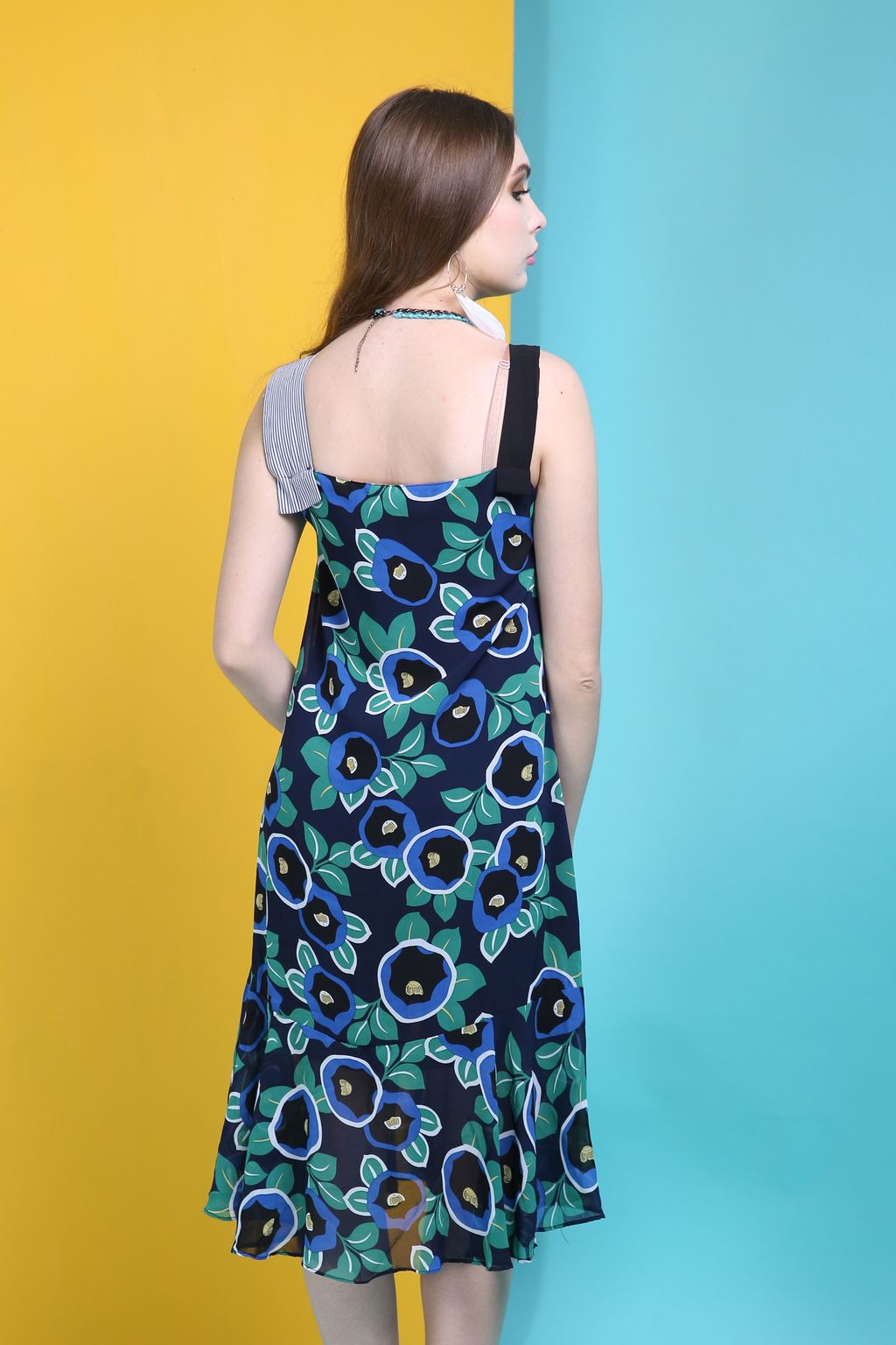 A ruffled hem midi dress that featuring a flower printed and sleeveless. Complete the look with your sling and favorite sandals.